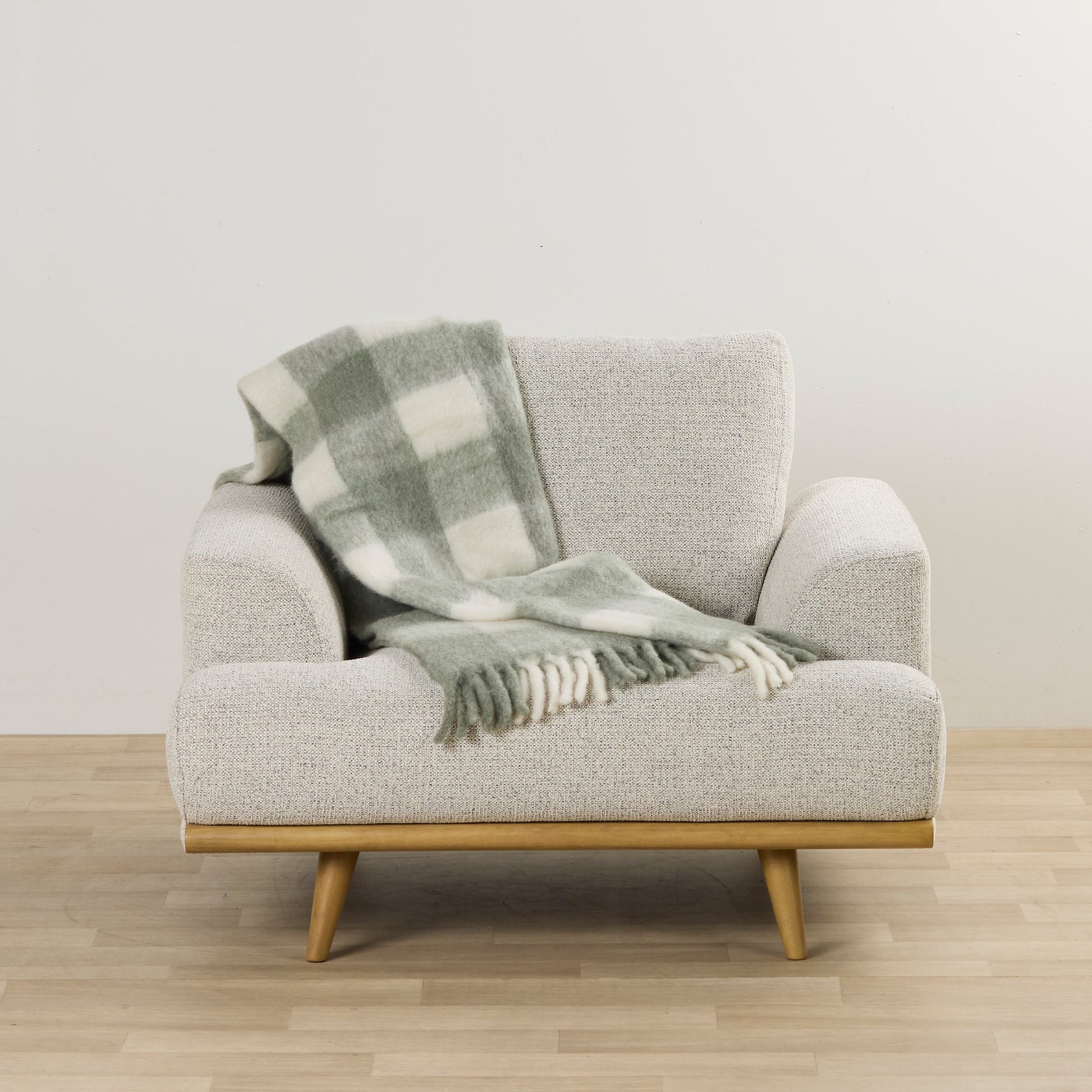 Pour ajouter une touche de douceur à un fauteuil, un canapé ou un lit, le plaid Asher est un choix idéal. Son motif vichy bicolore vert sauge, très tendance, apporte une note moderne tout en conservant une teinte neutre et réconfortante.