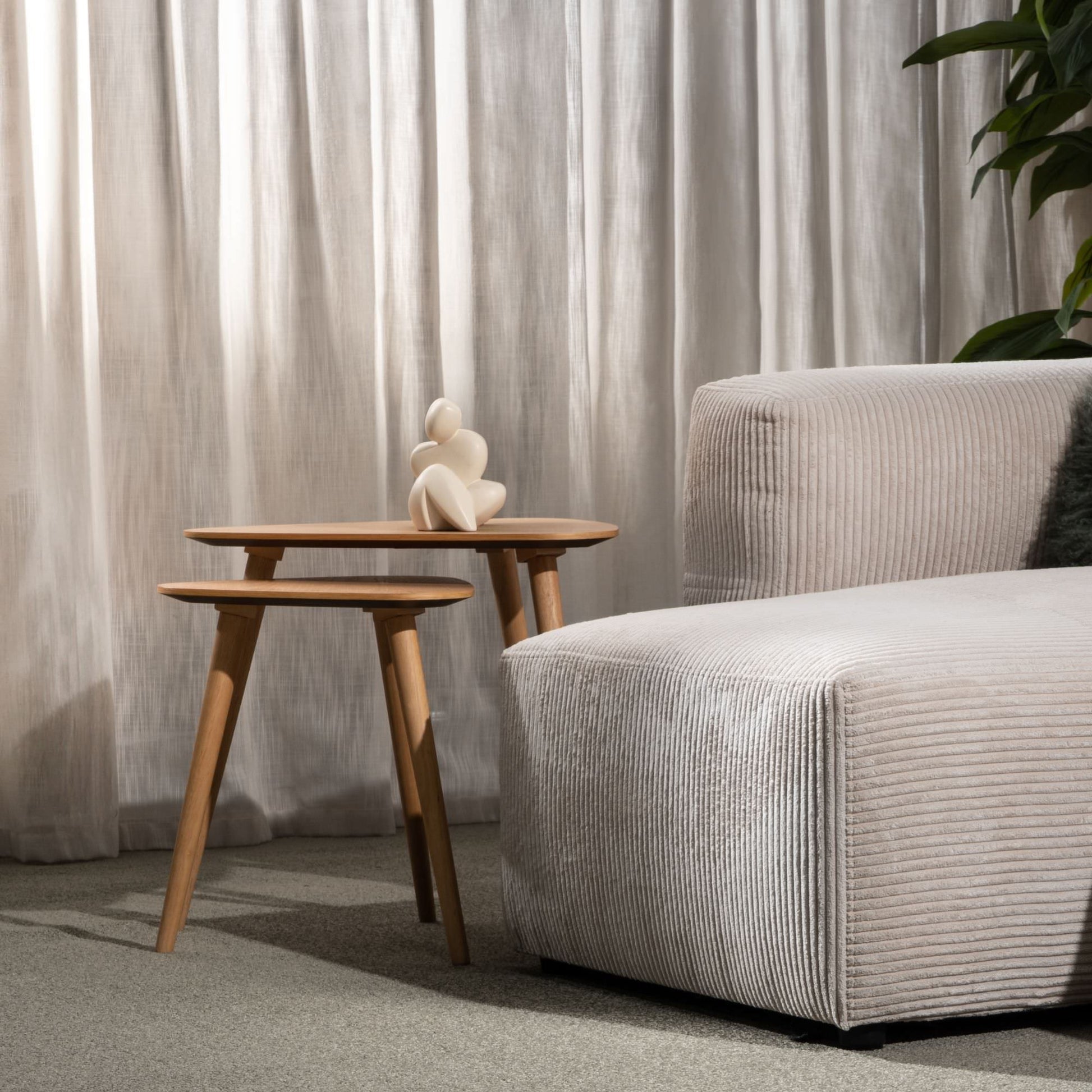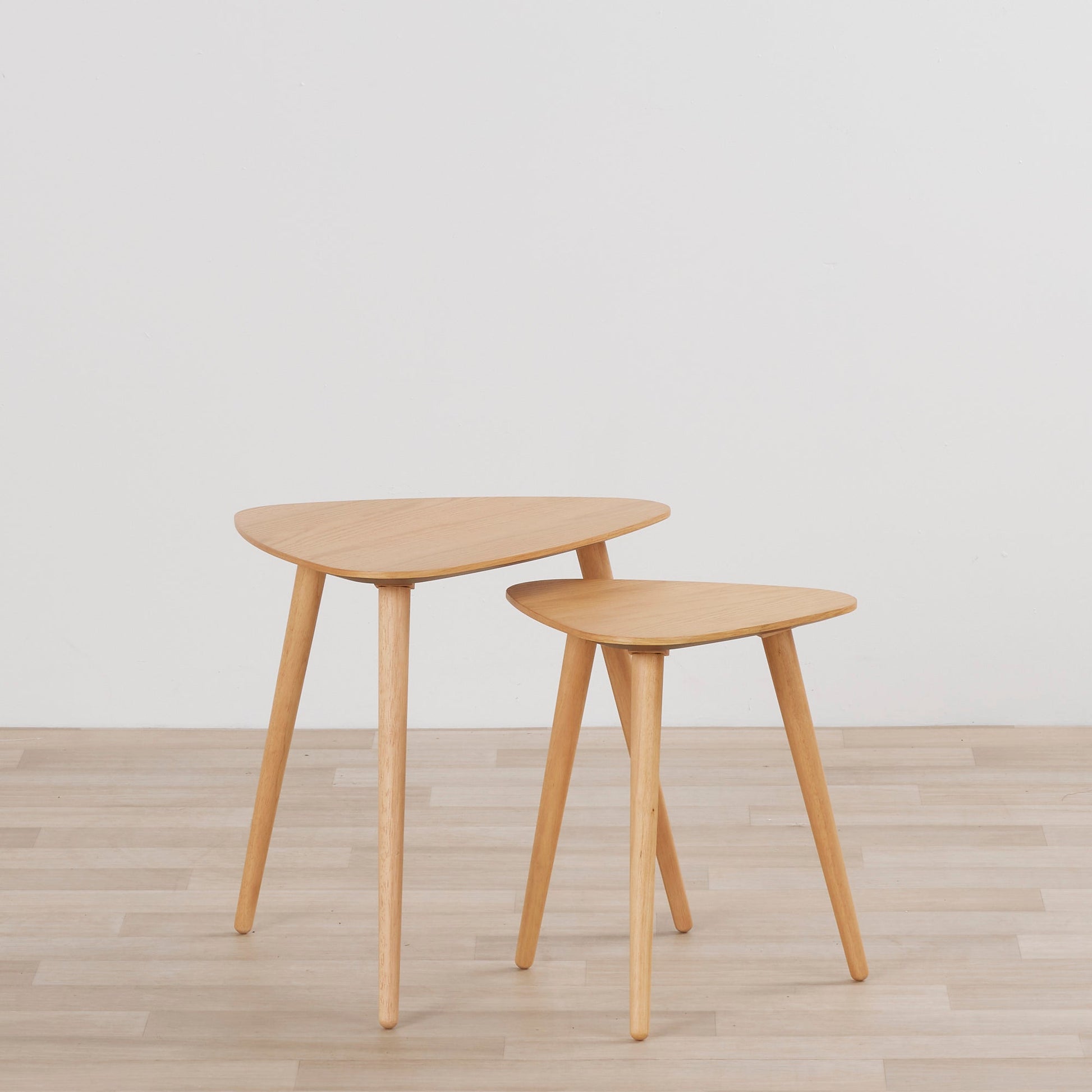 Les tables gigognes Barber arborent un design à la fois simple et raffiné. Avec leur finition laquée et leur placage en frêne, elles s'harmonisent parfaitement, disposées ensemble devant le canapé ou séparément pour poser des boissons, des livres et autres objets. Leur teinte frêne clair apporte chaleur et simplicité à tout espace de vie. Assemblage complet requis.