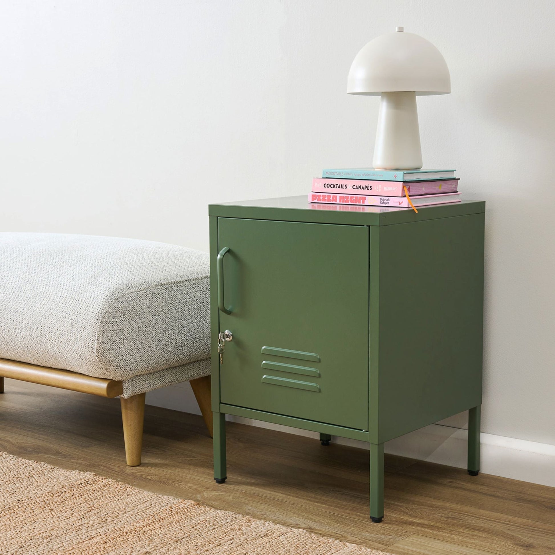 Le meuble de rangement Irvine à une porte, de couleur verte, allie esthétique et fonctionnalité. Idéal comme table de chevet ou pour ranger vos affaires dans la maison, il vous permet de garder vos effets personnels à portée de main avec style ! Assemblage complet requis.