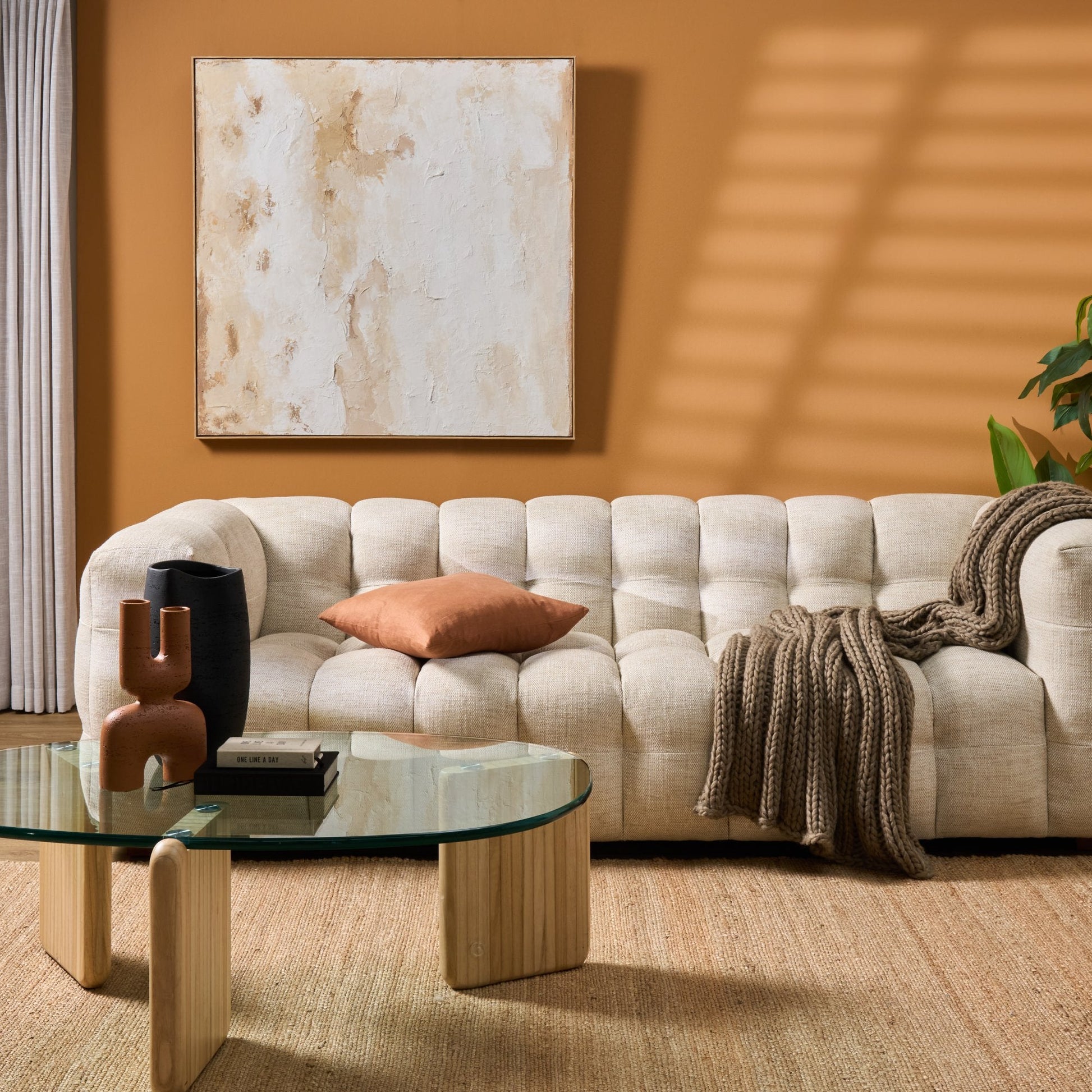 Offrez-vous un confort luxueux avec le canapé 3 places Tiber, inspiré des années 70. Outre son esthétique remarquable, ce canapé est si confortable que vous trouverez toutes les excuses pour y rester. Ses détails capitonnés raffinés et son tissu en velours texturé en font la pièce maîtresse de votre salon.