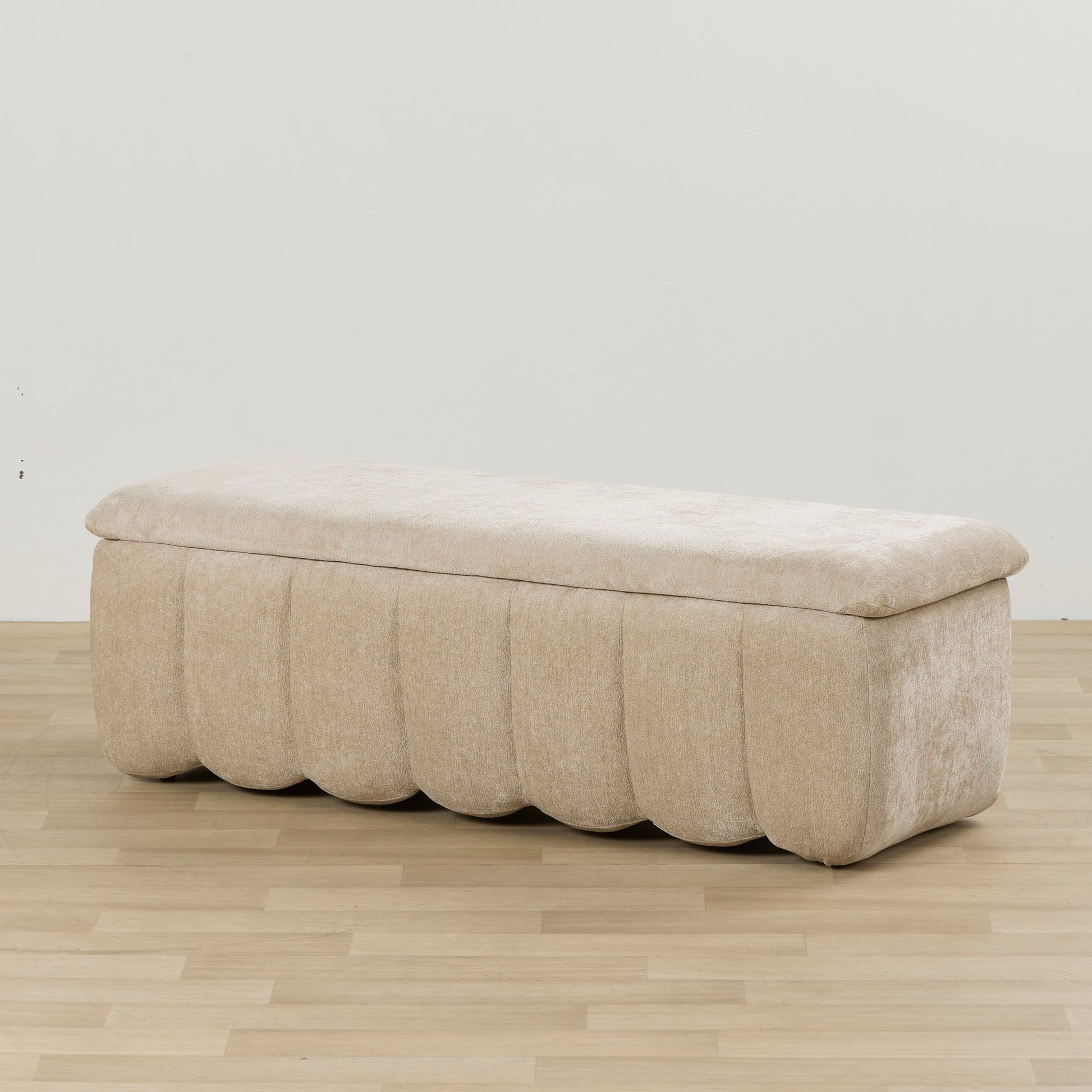 Optimisez votre rangement avec le pouf de rangement Trento : ranger ses affaires n’a jamais été aussi élégant ! Doté d’une base festonnée douce et d’un couvercle relevable, il offre un grand espace de rangement pour presque tout.